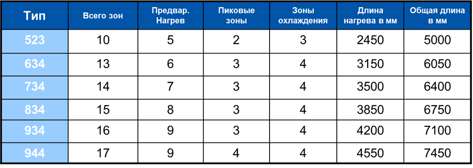 Предлагаемые печи обладают модульным концептом , где величина каждой зоны считается 350 мм.